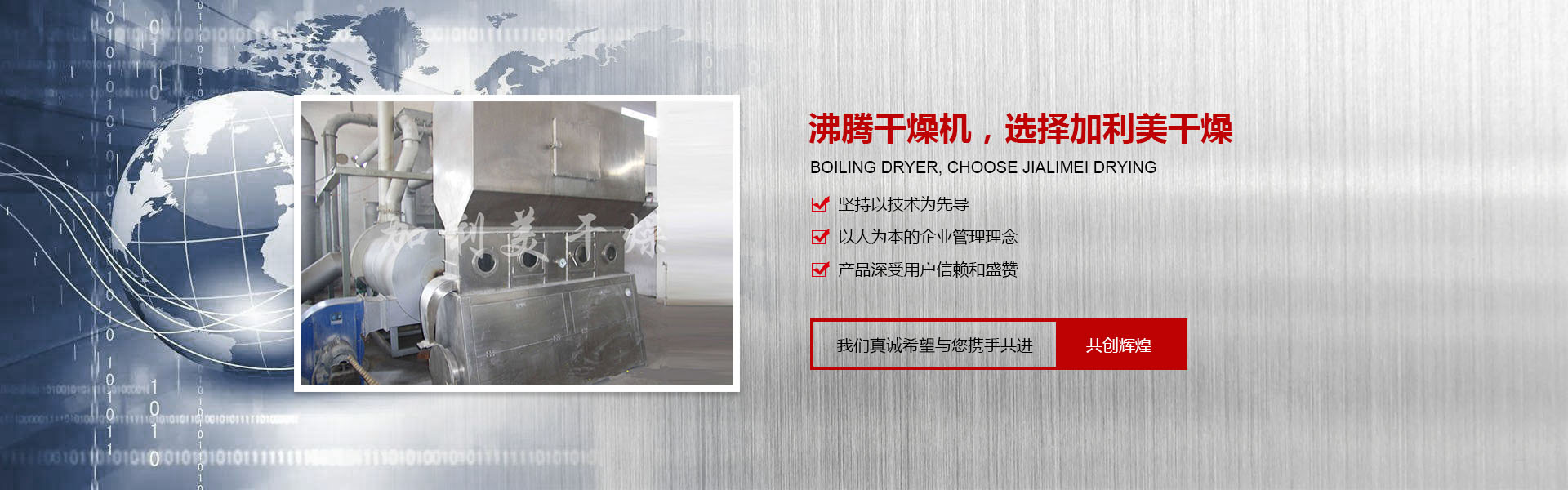 常州市加利美干燥設(shè)備有限公司是從事噴霧干燥機(jī),閃蒸干燥機(jī),雞精生產(chǎn)線和制粒機(jī)械的研究、開發(fā)及制造的專業(yè)性廠家,是目 前國內(nèi)生產(chǎn)干燥設(shè)備品種較多、規(guī)格較全的企業(yè)。 我公司吸收國內(nèi)外的先進(jìn)技術(shù)與經(jīng)驗(yàn),嚴(yán)格按國家GMP的要求設(shè)計(jì)、開發(fā)、生產(chǎn)、安裝和服務(wù)于一體,同時(shí)嚴(yán)格按照ISO9001國際質(zhì)量體系標(biāo)準(zhǔn)實(shí)施,確保了產(chǎn)品質(zhì)量。在干燥設(shè)備的開發(fā)、研究中不斷地創(chuàng)新及改造,設(shè)計(jì)制造了一系列工藝進(jìn)步且節(jié)能的產(chǎn)品。